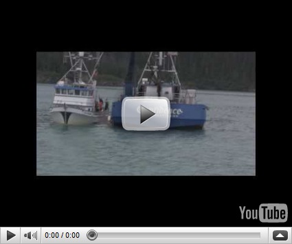 We next came above a fairly large group of fishing boats that are based at Valdez. The boats are individual own and fish for various fish a good part of the year. This time of year they are fishing for salmon. When a boat has a full load of salmon, he sells the load for cash to one of the waiting tenders. The tenders are from different fish companies based in Alaska and Washington State. They bid on the load from the fishing boat. Once a boat has sold and emptied his load, he redeploys his nets for another catch. The current going price for today was 37 cents a pound.